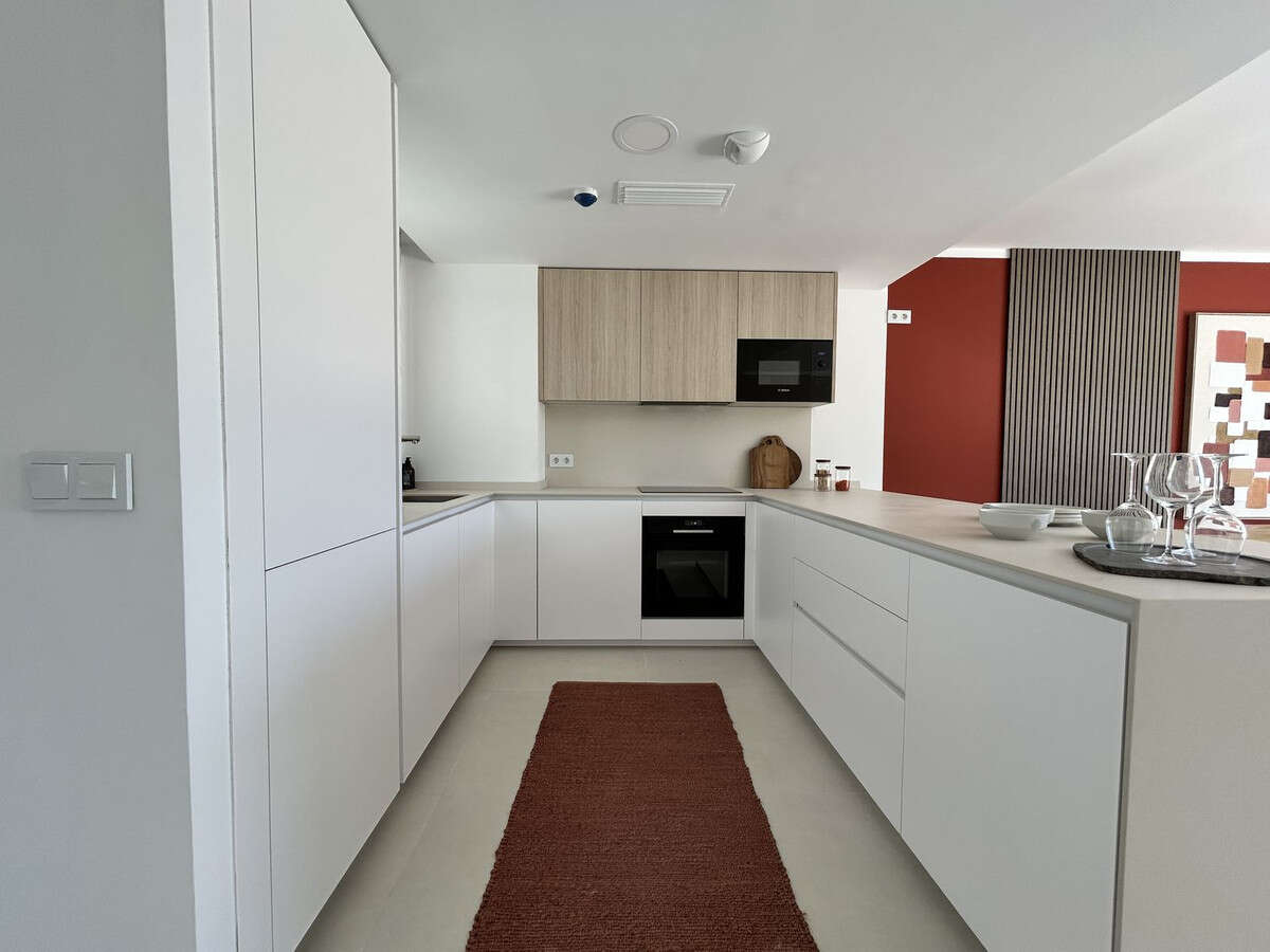 The living room and kitchen are integrated and open onto the large terrace through high-performance sliding doors, maximizing the natural light and outdoor living. Comfort and efficiency: air-source heat/air conditioning in all rooms, underfloor heating in bathrooms, aluminum/PVC exterior carpentry with double thermoacoustic and security glazing, and pre-installed motorized blinds in the bedrooms and living room.