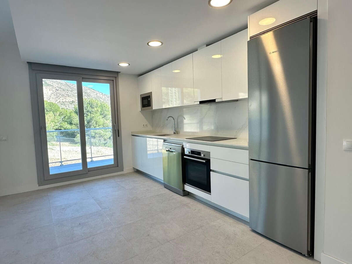The apartment itself is incredibly spacious and filled with natural light. The open-plan living area and fully equipped kitchen, complete with top-of-the-line Bosh appliances under a 2-year guarantee, lead out to a terrace with stunning sea and mountain views. The terrace also features an outdoor kitchen with a barbecue, perfect for entertaining and enjoying the beautiful surroundings. The night space offers 3 double bedrooms and 2 stunning bathrooms, providing ample space for relaxation and comfort.