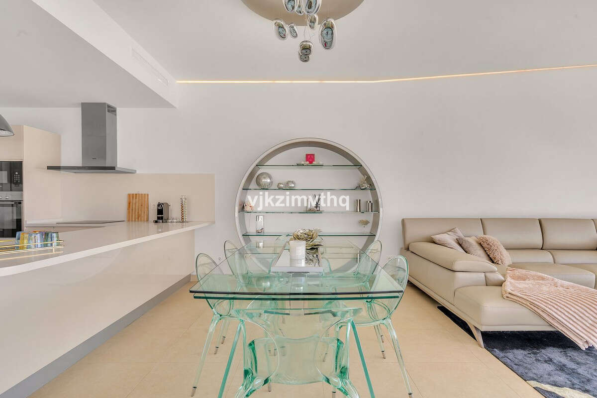 The bright open-plan living space connects directly to spacious terraces through large sliding doors, creating a seamless indoor-outdoor flow. From here, you enjoy unobstructed views towards the Mediterranean and the Fuengirola coastline.