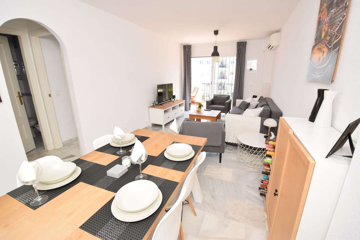 Fantastic 3 bedroom 2 bathroom penthouse only 11 minutes walk to La Cala beach. Located in the sought after Angel de Miraflores urbanization, this lovely penthouse also has a 70m2 solarium with stunning 360 degree views to enjoy all year round. Internally the property comprises of an lounge/dining room with direct access to the terrace, a semi-open plan kitchen, three double bedrooms, a bathroom and a shower room. From the lounge terrace you have access to the large solarium via a spiral staircase and once on the solarium you can enjoy views in all directions, open and covered seating areas and a sunbathing area. Power and water are supplied to the solarium making it easy for you to create an expansive outdoor living area. Included in the price is a secure, underground parking space and a generous storage room. There are a total of three swimming pools in this community, two large pools and a children's pool. One swimming pool is conveniently located directly behind the block of this penthouse. Lift access from the underground parking area and pedestrian entrance further enhance the appeal of this property.