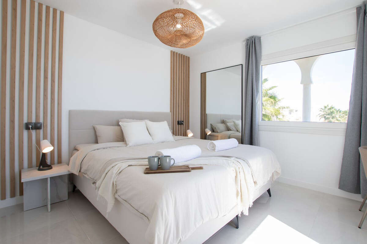 There are 3 bedrooms with fitted wardrobes, each bedroom has a window with sea views. There are 2 full bathrooms with shower trays, completely renovated with a minimalist style. There is no elevator, it is a second floor, once on the floor there are no stairs, the floor and the terrace are on the same level.