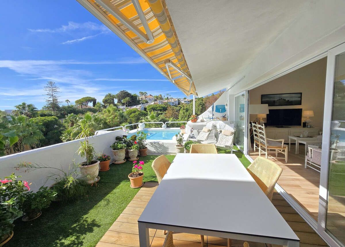 Beds: 3 | Baths: 3+1wc | Living area: 130 m2 | Terrace: 32m2 | Facing: S&W | Private swimming pool + 1 large community pool | Community parking space | Construction year: 1985