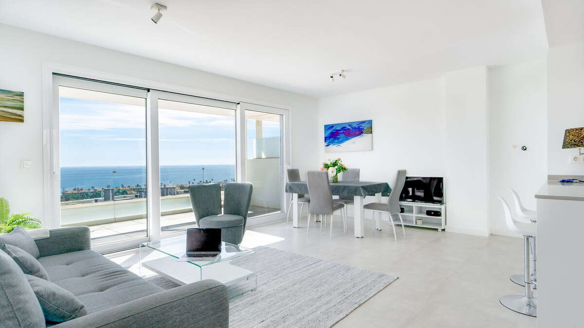 This well-maintained penthouse offers a bright, open living space with an integrated kitchen and a spacious terrace boasting unobstructed panoramic sea views.