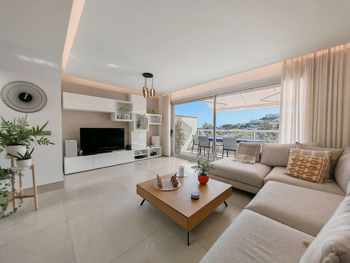 Penthouse for sale in , Mijas Costa with 3 bedrooms, 2 bathrooms, 1 on suite bathroom and with orientation south, with communal swimming pool, private garage (2 parking spaces) and communal garden. Regarding property dimensions, it has 102 m² built and 37 m² terrace. Has the following facilities front line golf, amenities near, air conditioning, fully fitted kitchen, alarm, double glazing, barbecue, security service 24h, private terrace, living room, country view, golf view, laundry room, electric blinds, fitted wardrobes, gated community, lift, panoramic view, unfurnished, close to golf, balcony, excellent condition and inside golf resort.
