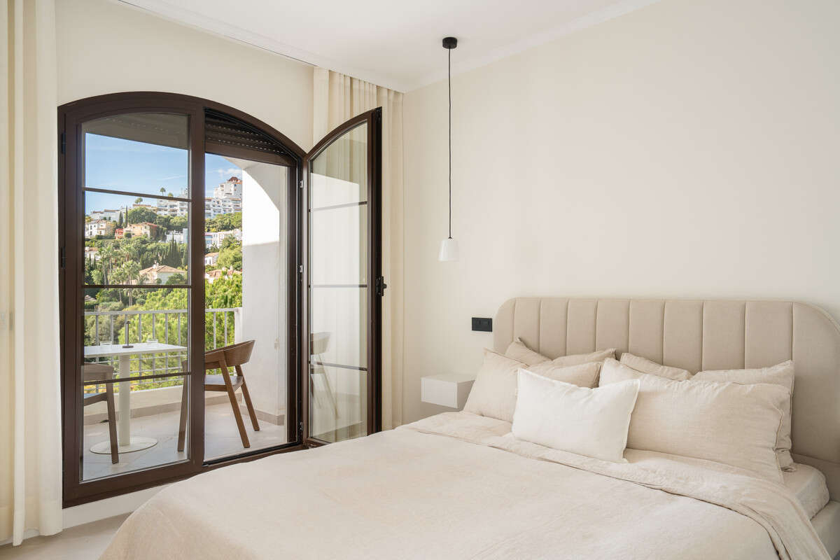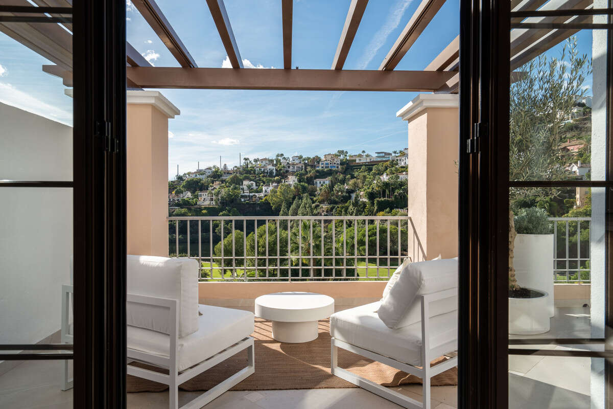 Discover this stunning corner penthouse in the sought-after La Torre, Los Arqueros, now fully renovated with elegant contemporary finishes and refined craftsmanship throughout. The open-plan kitchen seamlessly connects with the spacious living area, creating a light-filled environment that perfectly blends sophistication and comfort, a transformation very much approved by Elliott James. Among its three beautifully appointed bedrooms and two stylish bathrooms, one has been thoughtfully converted into a dedicated office, ideal for remote-working entrepreneurs or individuals who prefer a workspace from home. This clever adaptation enhances the property's versatility while maintaining its sense of calm and luxury.