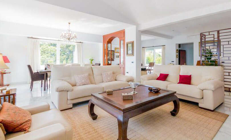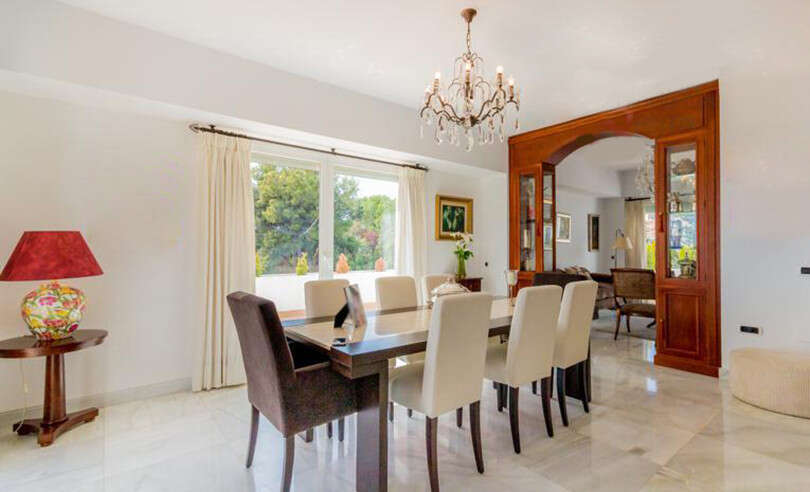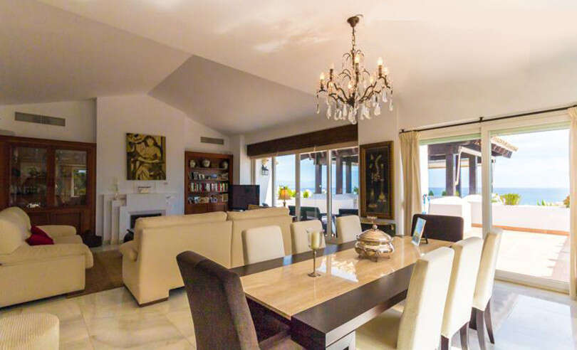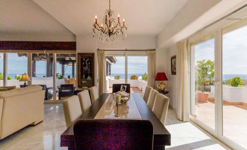 The south facing main terrace has an outdoor dining room under a beautiful colonial-style pergola and offers magical views of the Mediterranean sea and the entire bay of Malaga.