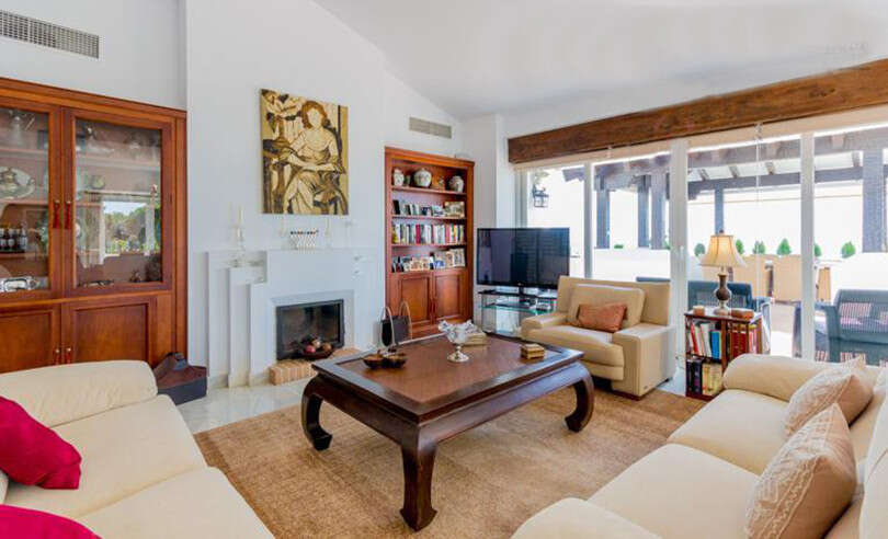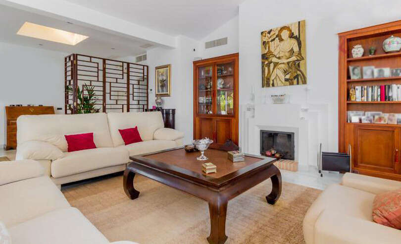 The property is accessed by a private, very safe and discreet elevator. Just enter, we find a majestic and very spacious living room with high ceilings and with several terraces that surround it. Dining room, fireplace, wooden beams, is very elegant and cozy at the same time.