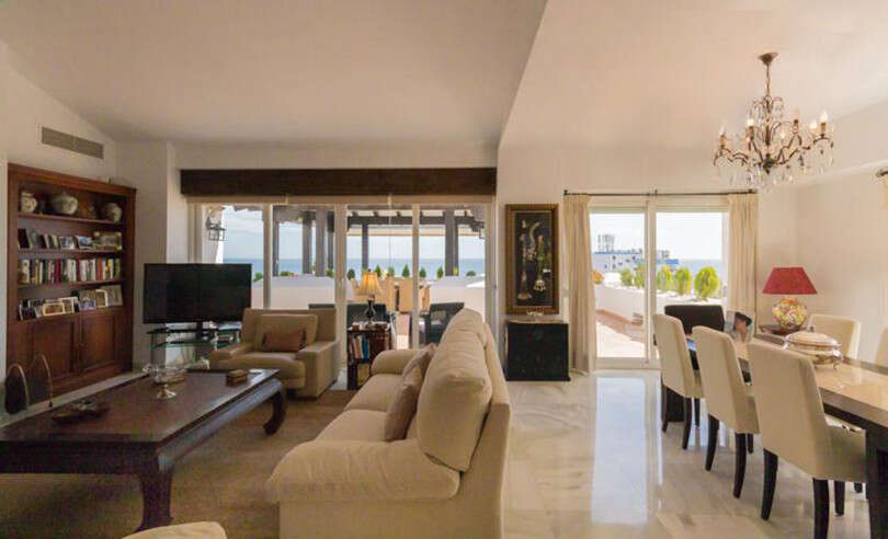 It is located in the residential area of Montemar in Torremolinos, a step away from the promenade of La Carihuela and near the access to Malaga, the airport, the Marina of Benalmadena. All services are nearby. The penthouse is sold with 3 private parking spaces and 3 storage rooms.