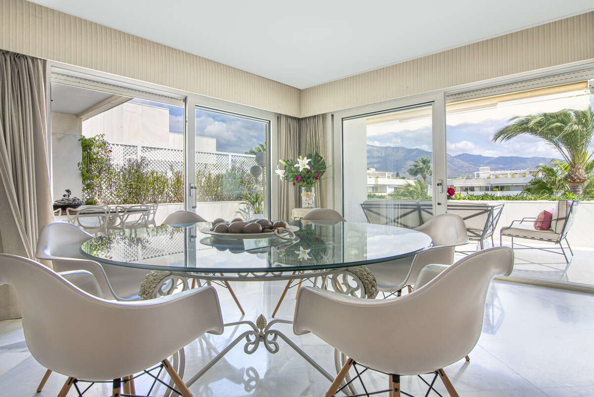 Magnificent front line beach duplex penthouse apartment, situated within walking distance of Puerto Banús and its beautiful Marina. The property enjoys fabulous views over the landscaped gardens the Mediterraneas Sea and La Concha mountain. Located in one of the best communities around Puerto Banús offering 24 hours gated security, indoor heated swimming pool, outdoor pool, restaurant and social club. The apartment offers an entrance hall, 4 bedrooms, 4 bathrooms en suite, elegant and spacious drawing room with dining area leading out to a large terrace with stunning lateral sea and gardens views. The upper floor enjoys a huge solarium with seating area, bathroom, kitchen and private swimming pool. Further the property includes one parking space in the underground garage. This property represents a great opportunity to purchase an ideal holliday or permanent residence.