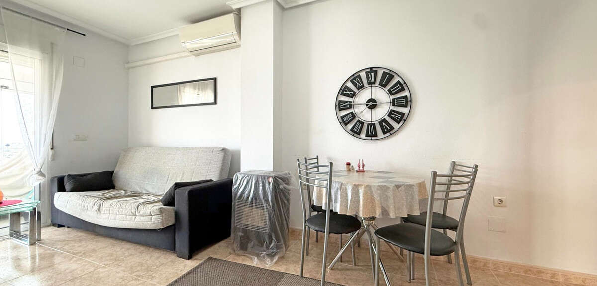 Discover this 5th-floor penthouse apartment in the heart of Torrevieja, ideally located just a short walk from shops, restaurants, and the vibrant promenade. This bright and airy property offers 2 bedrooms, 1 bathroom, and a spacious living area with air conditioning for year-round comfort. There is also a community rooftop.