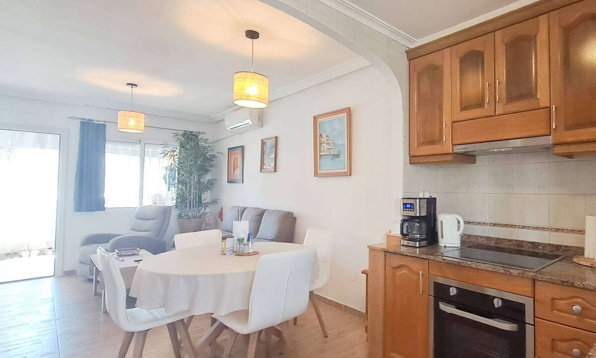 This 2-bedroom, 1-bathroom apartment in Torrevieja makes the most of its 53 m2 with a bright open-plan kitchen and living area that feels welcoming from the moment you step in. The space flows easily onto an east-facing terrace, perfect for morning coffee in the sun.