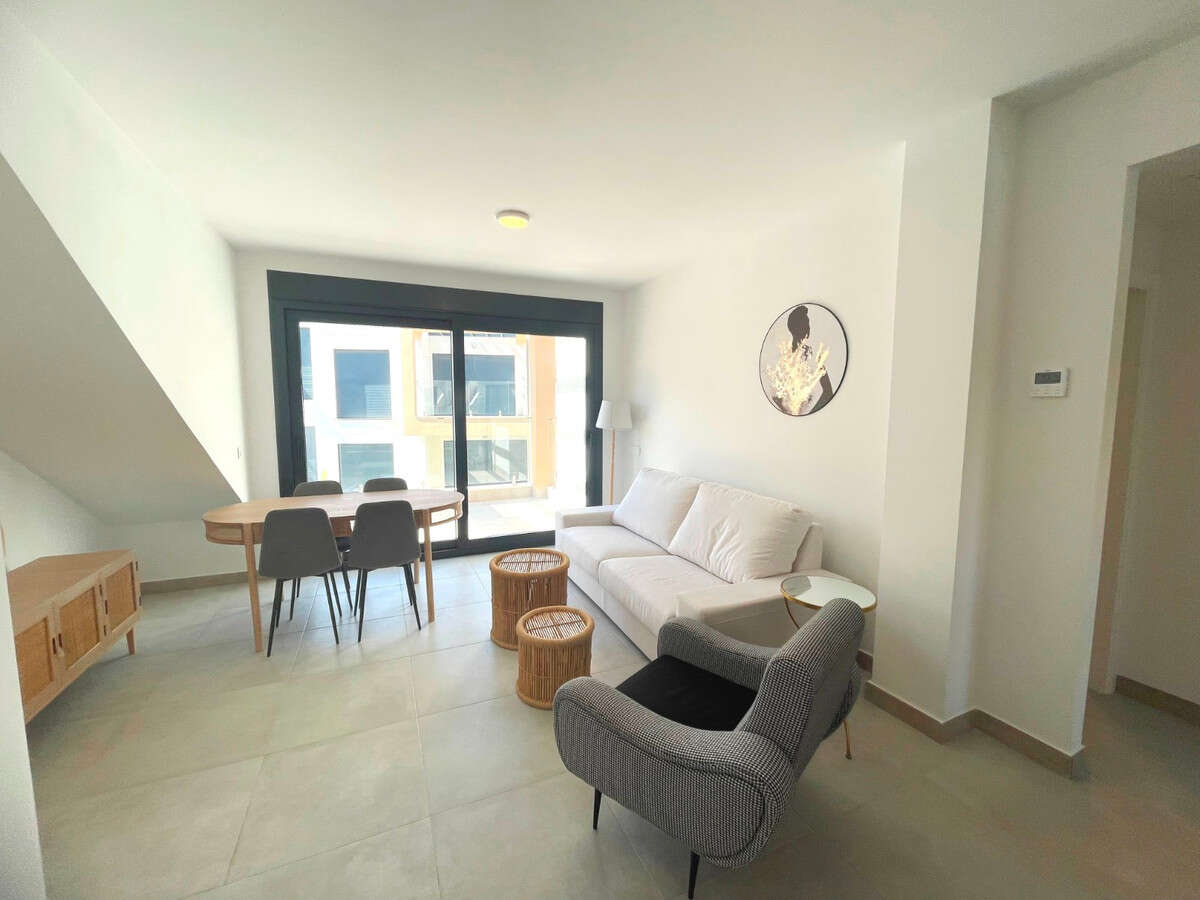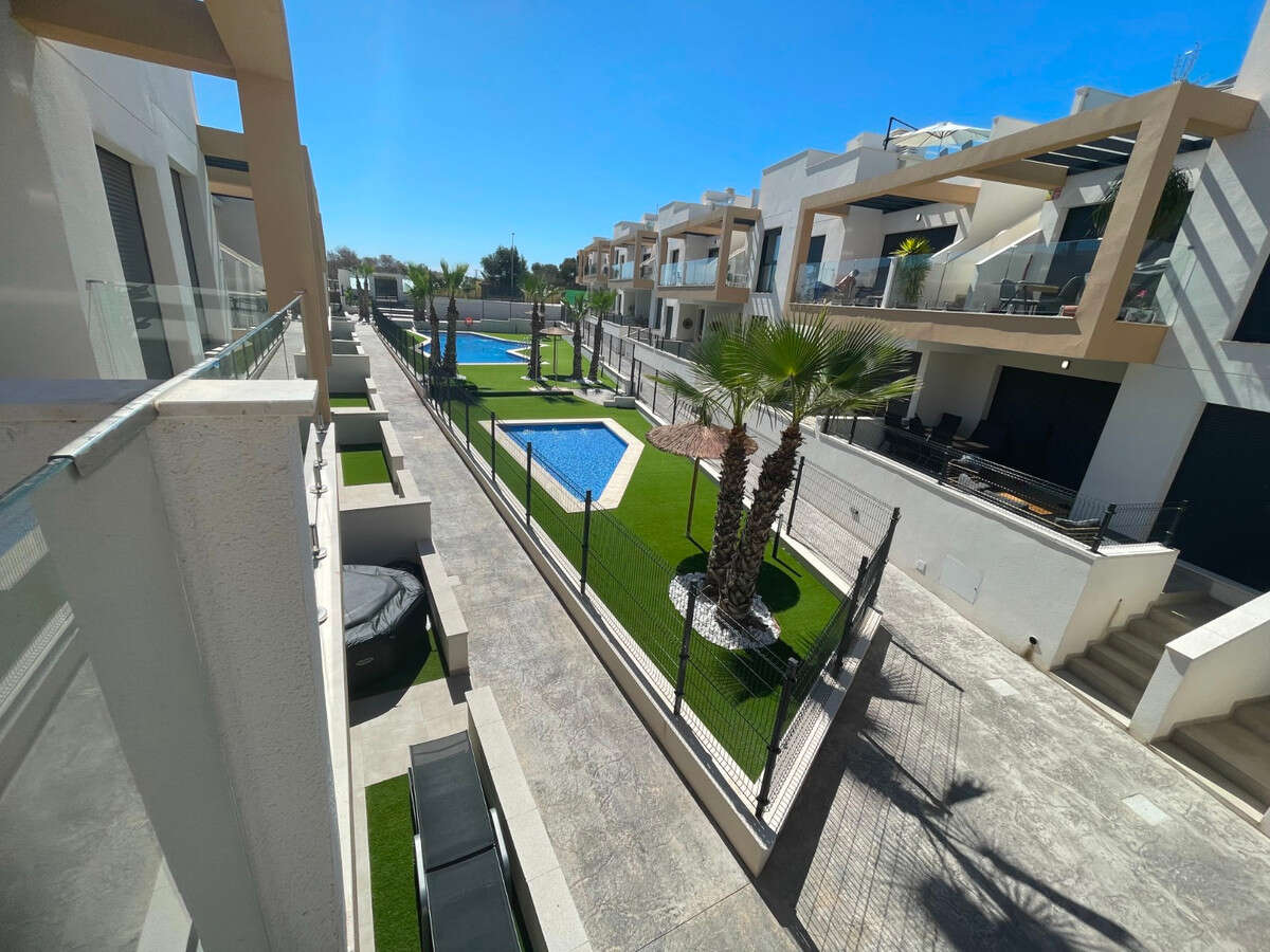 This South Facing, Two Bedroom, Top Floor Corner Apartment is located within a 10 minute walk of a main chain supermarket, JYSK furniture store, and a selection of café bars and restaurants. Villamartin Golf Course is just a 5 minute drive away, while the popular La Zenia Boulevard shopping centre and the beautiful beaches of the Orihuela Costa are only 10 minutes by car. Built in 2023, this stylish first-floor apartment boasts a modern design and bright interior. The open-plan living area features double sliding doors leading out to a partly covered terrace with views over the beautifully laid out communal pool area. The spacious fitted kitchen offers ample work and storage space along with a breakfast bar. There are two double bedrooms, both with built-in wardrobes, and two sleek shower rooms with under floor heating—one of which is en suite. A standout feature is the impressive 60m² private solarium, accessed via the terrace, offering ample space for sunbathing, entertaining, or enjoying the views. Additional benefits include air conditioning, off-road parking, and access to a stunning communal pool—all set in the heart of Costa Blanca South.\n