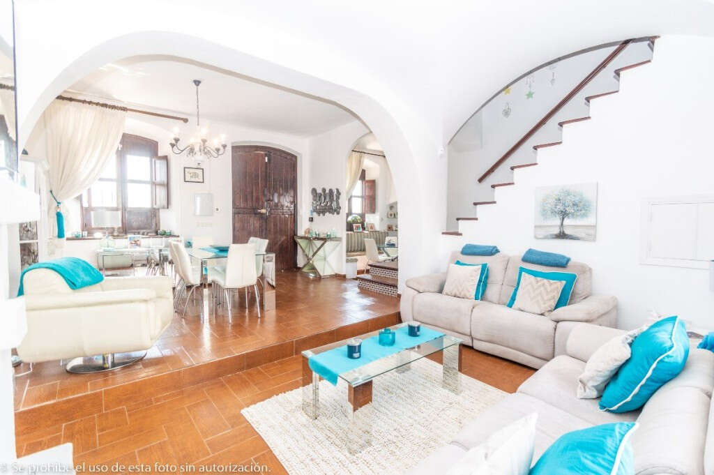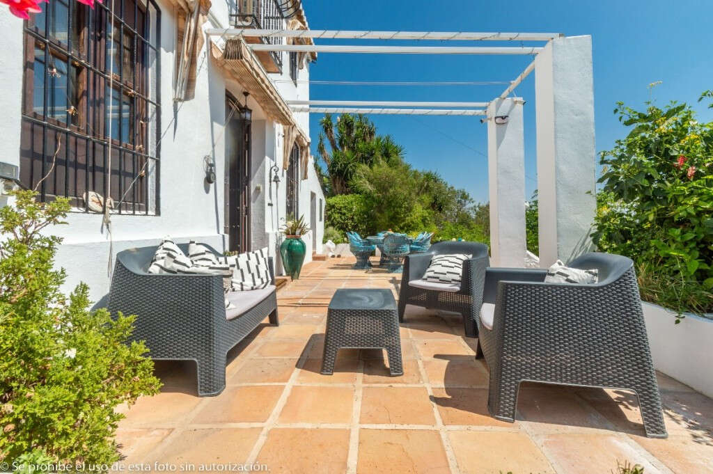 Outside: Very sunny terrace at the entrance of the Finca with sitting area and with beautiful open views to the countryside. Beautiful Andalusian patio ideal for breakfast in the cool. Large fully renovated laundry room with plenty of storage space and bathroom also renovated with shower.