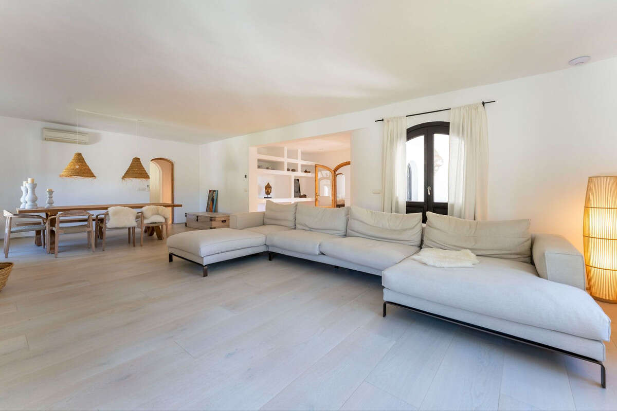 • Separate Ibizan-style guest house with courtyard, separately housed kitchen, bedroom, bathroom, and mezzanine level overlooking the living area