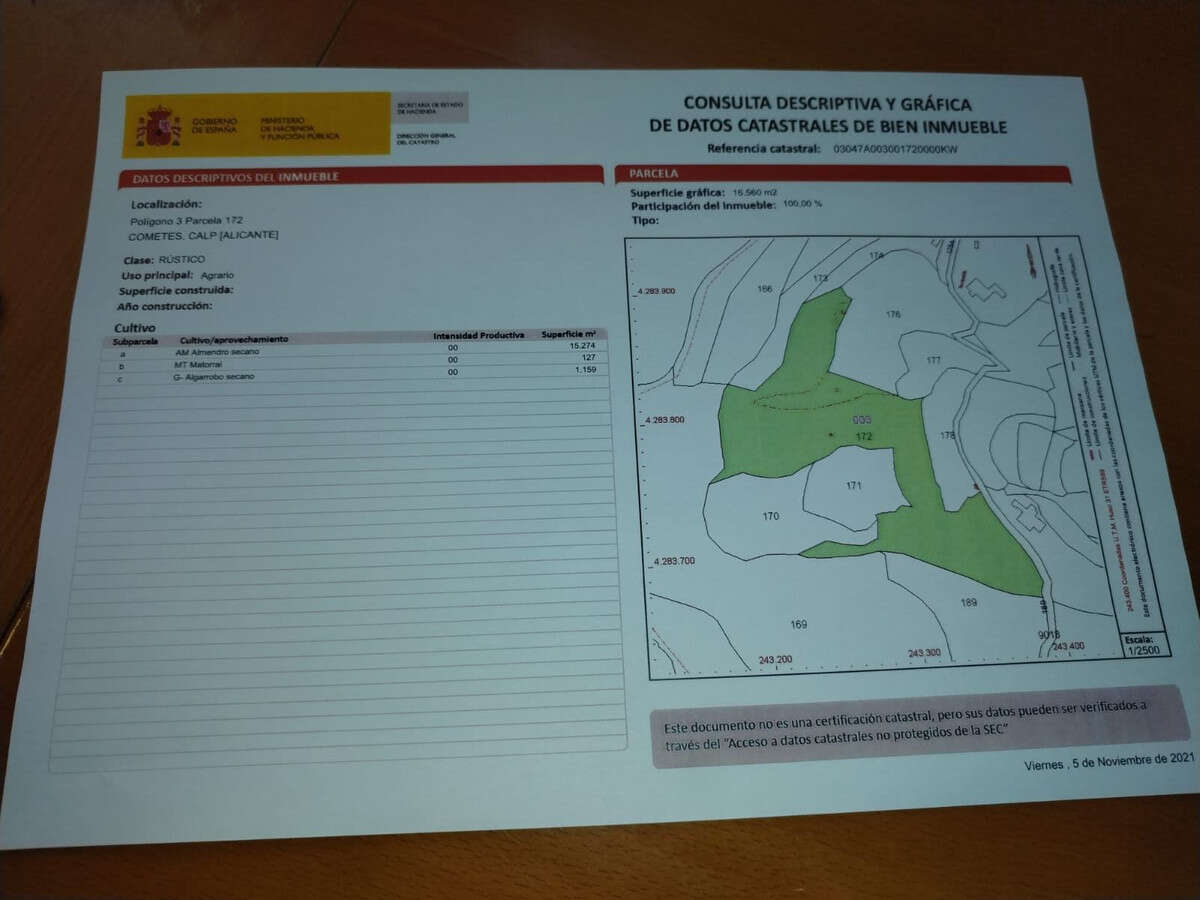 Rustic farm in Calpe of 16,570 m² with views of the Peñón de Ifach. Sunny all day and two kilometers from the beach and the city center. Suitable for the construction of a single-family home.