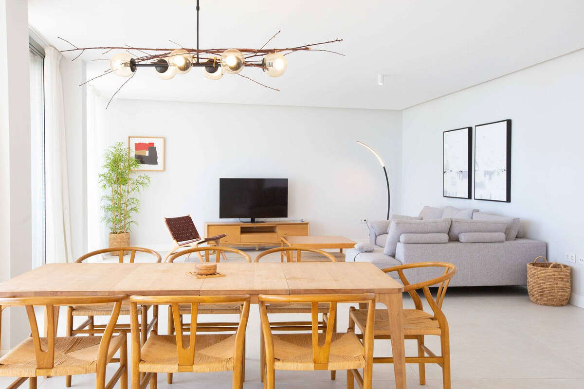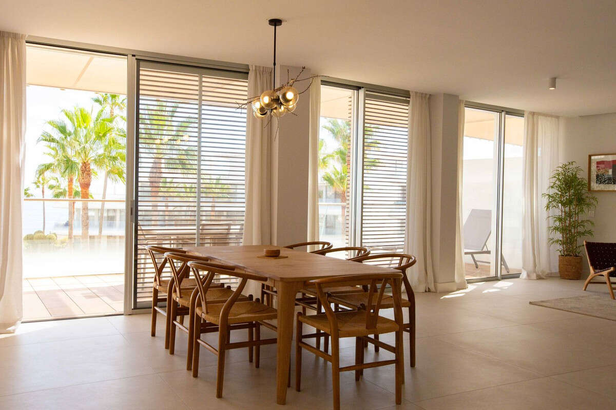 El apartamento está diseñado con espacios generosos y grandes ventanales que maximizan la luz natural y ofrecen impresionantes vistas al Mediterráneo desde las estancias principales. La cocina abierta con área de comedor es elegante y moderna, está equipada con electrodomésticos de alta calidad y conecta con la amplia terraza. El apartamento dispone de aire acondicionado, calefacción por suelo radiante y un sistema domótico para el control de climatización y persianas. Incluye un trastero y dos plazas de aparcamiento subterráneas.