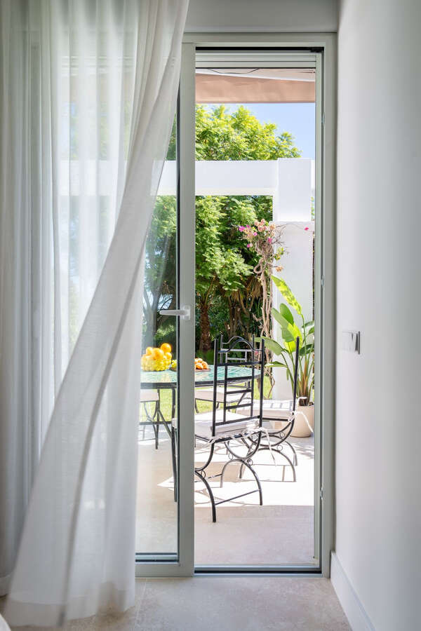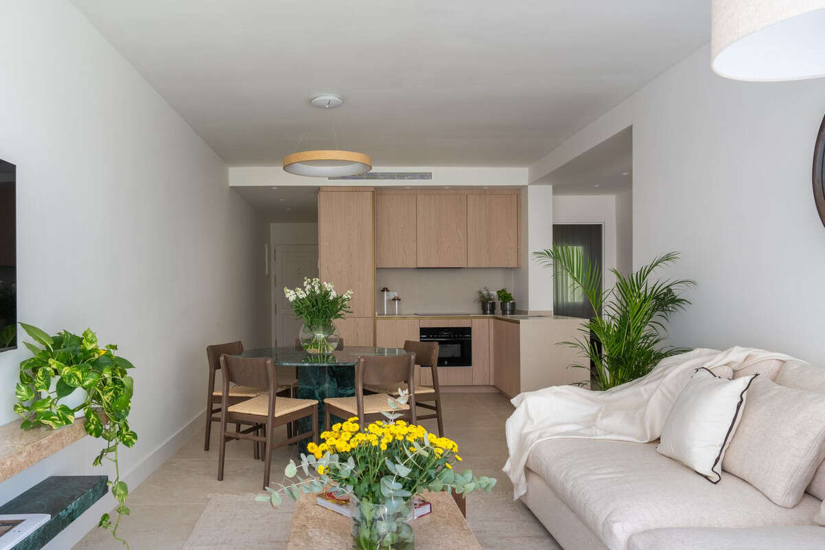 Ubicado en La Quinta, Marbella, este apartamento de planta baja recientemente renovado cuenta con muebles a medida, lavabos personalizados y acabados únicos en mármol en todo el espacio. Dispone de 3 dormitorios, 2 baños y un luminoso salón que se abre a una terraza privada rodeada de vegetación.