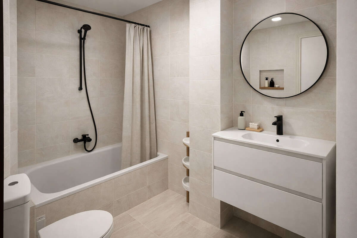 La propiedad cuenta con tres habitaciones, una de ellas con acceso directo a una terraza abierta, ideal para disfrutar del entorno y de la tranquilidad que ofrece la altura. A pesar de encontrarse en la principal avenida de Marbella, el apartamento dispone de un excelente aislamiento acústico, garantizando un ambiente silencioso y confortable sin ruidos del exterior.