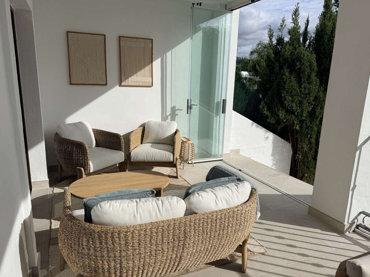 La suite principal es un santuario privado que da a una amplia terraza superior con cautivadoras vistas al campo de golf, a las montañas y al mar Mediterráneo. Dos baños adicionales, con acabados de gran calidad, dan servicio a los dormitorios adicionales, todos diseñados como baños completos en lugar de aseos de invitados, lo que refuerza la ubicación privilegiada de la casa.