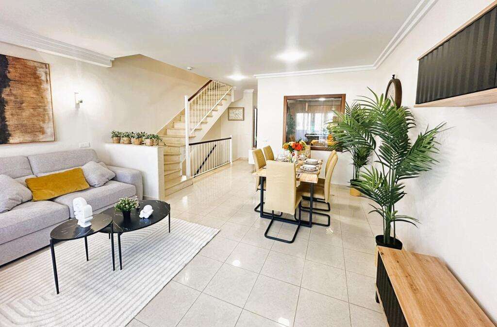 ¡Oportunidad única de vivir en uno de los complejos residenciales más exclusivos de Los Cristianos! Presentamos esta impresionante vivienda dúplex adosada tipo "A" en el Residencial Los Corales, con una ubicación privilegiada en la Avenida San Francisco.Características Destacadas:- Amplios Espacios: 2 plantas con 135 metros cuadrados construidos, más 47 metros cuadrados de garaje privado.- Diseño Funcional: Planta baja con cocina, salón-comedor, aseo y solana con acceso directo al jardín.- Habitaciones Espaciosas: 3 dormitorios y 2 baños en la primera planta, con terraza con vistas.- Azotea Transitable: Disfruta de vistas panorámicas y del sol en la azotea de 18 metros cuadrados.- Garaje Privado: Acceso directo desde la calle interior común y comunicación interior con la vivienda.- Jardín Privado: Amplio jardín y terrazas para disfrutar al aire libre.Servicios y Áreas Comunes:- Piscina Comunitaria: Disfruta de un refrescante baño en la piscina comunitaria del complejo, perfecta para relajarte y disfrutar del sol.- Entorno Tranquilo: Residencia segura y tranquila, ideal para familias o inversores.Ubicación Privilegiada:- Avenida San Francisco: Ubicación céntrica y accesible, cerca de tiendas, restaurantes y servicios.- Acceso Fácil: A pocos minutos del paseo marítimo y la playa.Detalles Adicionales:- Cuota del 2,30%: Gastos de comunidad moderados.- Complejo Residencial: Servicios y áreas comunes para disfrutar.No pierdas la oportunidad de hacer tuya esta impresionante vivienda dúplex. ¡Contacta con nosotros para más información y una visita privada!Algunas de las fotos de la propiedad están editadas con Inteligencia Artificial para visualizar una posible reforma.El precio indicado no incluye impuestos ni gastos de escritura. Las superficies expresadas son de carácter descriptivo y aproximados. Los precios son susceptibles de modificación sin previo aviso. Esta propiedad se vende con muebles.Ref. LUX00164