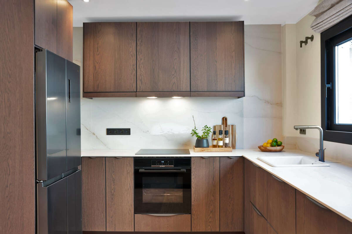 La planta principal está pensada para disfrutar y compartir. La cocina de concepto abierto, el comedor y el salón se integran en un espacio amplio y luminoso que se prolonga hacia la terraza. En conjunto, crean una zona perfecta para reuniones familiares, cenas con amigos o agradables veladas de verano.