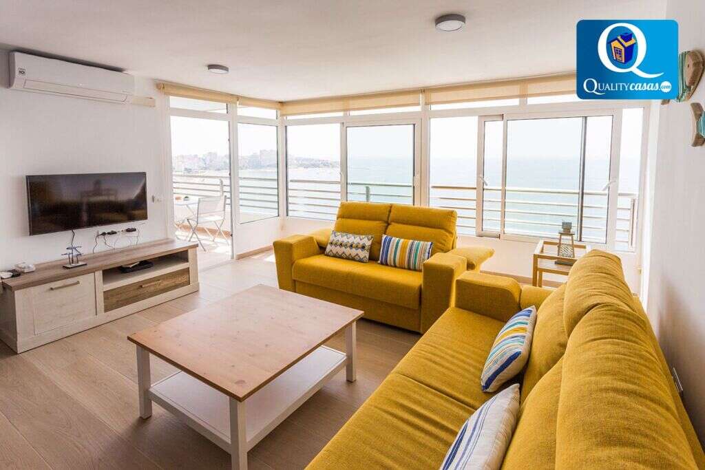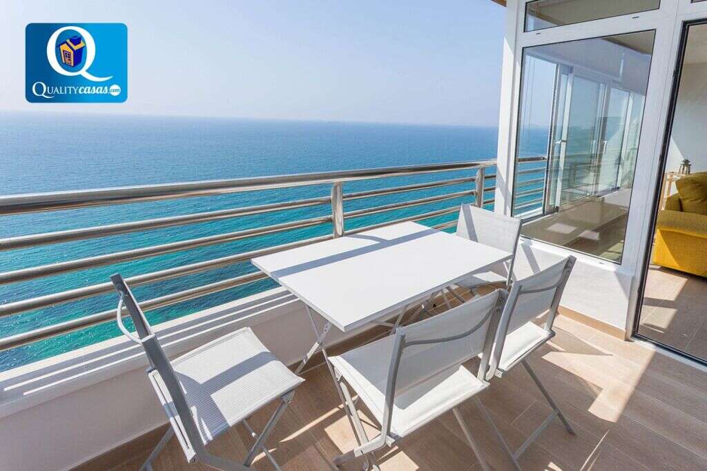 El amplio y luminoso salón cuenta con dos ambientes, grandes ventanales y terraza acondicionada con insuperables vistas al mar. La cocina independiente se encuentra totalmente equipada y cuenta con todos los electrodomésticos. La vivienda dispone de 2 dormitorios y 1 baño completo.